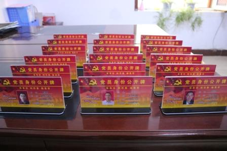 首先制作了“黨員身份公開牌”,公開黨員姓名、崗位、入黨時間及服務承諾,擺放在明顯的辦公位置,接受廣大員工監(jiān)督。同時,要求全體黨員在黨內活動及公司活動中佩戴黨徽。通過“亮身份、樹形象、做表率”教育廣大黨員在任何崗位、任何時間、任何地點、任何情況下時刻以高標準要求自己,內強素質,外塑形象,在工作崗位上做表率、當尖兵,積極弘揚正能量,充分發(fā)揮黨員的先鋒模范作用和凝聚作用。