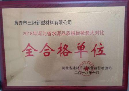 黃驊三陽(yáng)喜獲得水泥品質(zhì)指標(biāo)檢驗(yàn)大對(duì)比全合格單位稱號(hào)