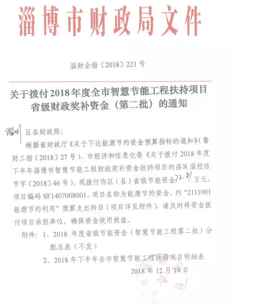 魯中水泥獲2018年全市智慧節(jié)能工程獎(jiǎng)補(bǔ)資金