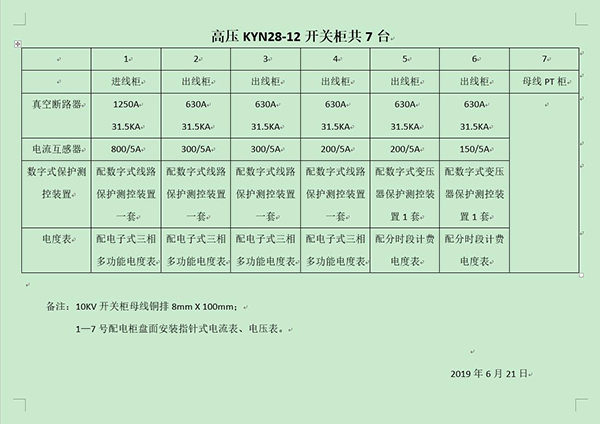 后附配置表,其中真空斷路器按照正泰、泰開(kāi)或施耐德等品牌分別報(bào)價(jià),數(shù)字式保護(hù)測(cè)控裝置無(wú)指定品牌要求,報(bào)價(jià)時(shí)注明所報(bào)品牌; |