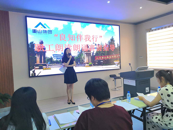為提高各位參賽選手的能力,保證“良知伴我行”職工朗讀朗誦比賽取得良好的效果。6月24日,集團辦公室邀請區(qū)電視臺文體部主任李麗、主持人王寧、攝像記者車俊艷、張志凌霄四位專業(yè)老師做賽前指導(dǎo)。四位老師針對每位參賽選手的表現(xiàn)和稿件內(nèi)容,從語調(diào)、節(jié)奏、走臺、故事講述、排比句等朗讀技巧進行了現(xiàn)場示范。參賽選手經(jīng)過老師的專業(yè)指導(dǎo),掌握了更好的朗讀朗誦技巧,對正式比賽充滿了信心。