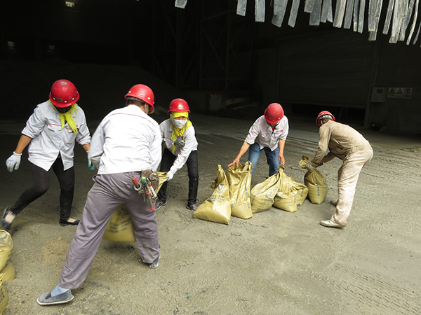 演練模擬暴雨到來(lái)時(shí),地面積水較多,雨水即將灌入生產(chǎn)車間內(nèi)。接到險(xiǎn)情報(bào)告后,應(yīng)急小組組長(zhǎng)高杰迅速調(diào)動(dòng)應(yīng)急防汛小組成員,啟動(dòng)防汛應(yīng)急程序,指令電工高超立刻切斷存有進(jìn)水隱患的設(shè)備電源,避免漏電,造成觸電事故,同時(shí)組織應(yīng)急救援人員,攜帶水泵、沙袋、鐵锨、雨衣、膠鞋等搶險(xiǎn)工具,趕到生產(chǎn)車間東大門(mén),迅速筑起沙袋防止雨水灌入車間,影響生產(chǎn)運(yùn)行。同時(shí)安排人員對(duì)存有積水的電纜溝安裝潛水泵進(jìn)行排水,確保廠區(qū)電路及設(shè)備安全運(yùn)行。直到確認(rèn)生產(chǎn)車間無(wú)雨水涌入,廠區(qū)下水管道排水順暢,險(xiǎn)情解除后,宣布演練結(jié)束。