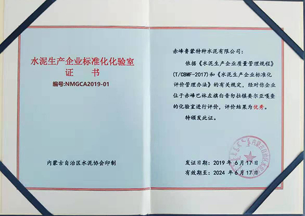 魯蒙水泥化驗(yàn)室榮獲“優(yōu)秀化驗(yàn)室”稱號(hào)