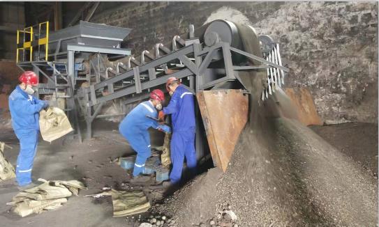 為了有效改善這一難題,生產(chǎn)技術部成立了研發(fā)小組,針對爐渣特性,自主研發(fā)制作強磁滾筒皮帶除鐵機。研發(fā)小組從廢舊設備堆挑選出淘汰的電氣設備和舊皮帶機,邊試驗邊改進,歷經(jīng)15個工作日研發(fā)成功變頻式強磁皮帶除鐵機。投入現(xiàn)場試車后,設備性能穩(wěn)定、故障率低、揚塵小,除鐵效果高達到98%以上,篩選人工只需原來的一半,降低人工成本的同時,有效改善了工作強度和工作環(huán)境,工作效率大大提高。