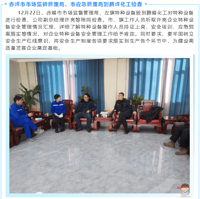 赤峰市市場(chǎng)監(jiān)督管理局、市應(yīng)急管理局到鵬峰化工檢查