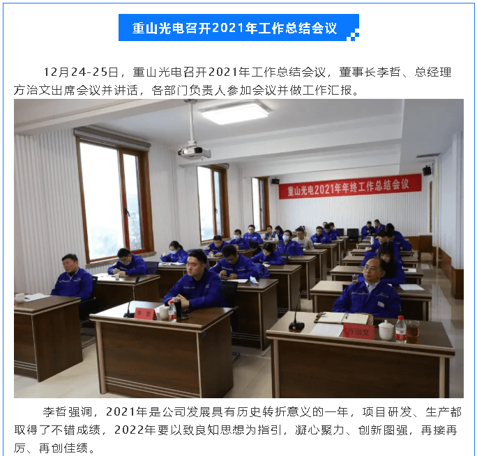 重山光電召開2021年工作總結(jié)會(huì)議