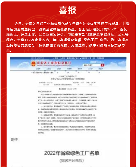 魯中水泥榮獲省級(jí)“綠色工廠”