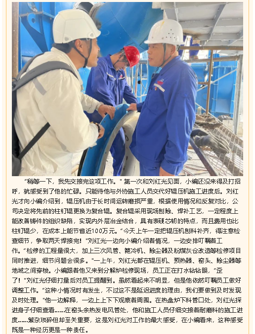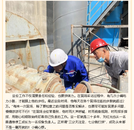 【重山人?重山事】始終奔波在生產(chǎn)一線(xiàn)的“老黃?!薄涺斨兴嗌a(chǎn)技術(shù)部設(shè)備總工劉紅光