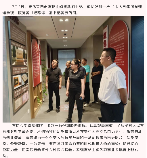 青島萊西市夏格莊鎮(zhèn)領(lǐng)導到集團參觀