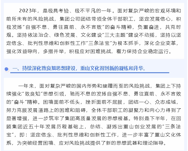 重山集團(tuán)2024年工作報(bào)告(一)