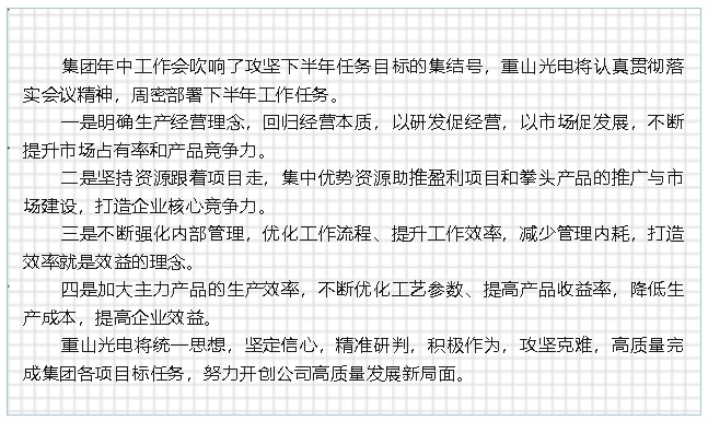 【貫徹落實年中會議精神】下半年怎么干——重山光電