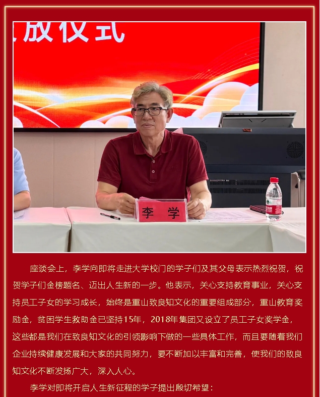 逐夢(mèng)新征程——重山集團(tuán)舉行2024年度重山獎(jiǎng)學(xué)金發(fā)放儀式