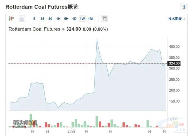歐洲煤炭?jī)r(jià)格基準(zhǔn)之一、鹿特丹煤炭期貨價(jià)格走勢(shì) 圖片來(lái)源:英為財(cái)情