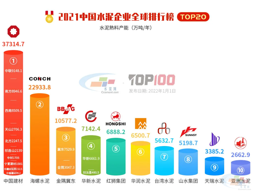 2022年1月1日,元旦之際,“2021中國水泥熟料產(chǎn)能百強榜”如期發(fā)布,這是中國水泥網(wǎng)連續(xù)第18年發(fā)布該榜單。在中國水泥企業(yè)全球產(chǎn)能排行中,紅獅集團超過華潤水泥,排名升至第五位。