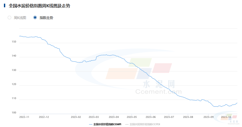 截止10月24日,全國水泥價(jià)格指數(shù)(CEMPI)為108.65點(diǎn),較月初的106.53點(diǎn)上漲2.12點(diǎn),漲幅僅為2%,同比下跌29.71%??偟膩砜?,10月至今由于下游需求恢復(fù)有限,水泥價(jià)格小幅探漲。