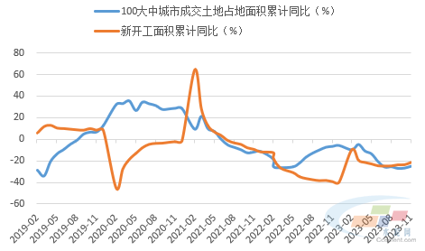 2024年房地產(chǎn)重點工作仍在“保交樓”和“控風險”,同時“三大工程”持續(xù)發(fā)力,這將減緩房地產(chǎn)投資下滑幅度。土地購置面積和新開工是投資端的兩個重要指標,截至到2023年11月,兩者同比分別下降25.2%、21.2%,目前仍未企穩(wěn),二者對2023年地產(chǎn)前端建安工程投資有一定負面影響。