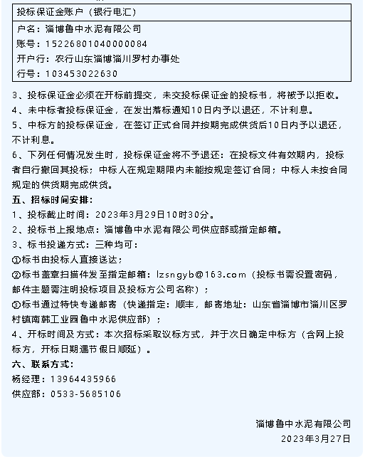 【招標公告】重山集團、魯中水泥、魯蒙水泥