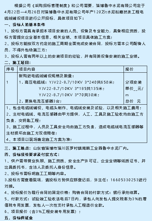 【招標(biāo)公告】魯中水泥