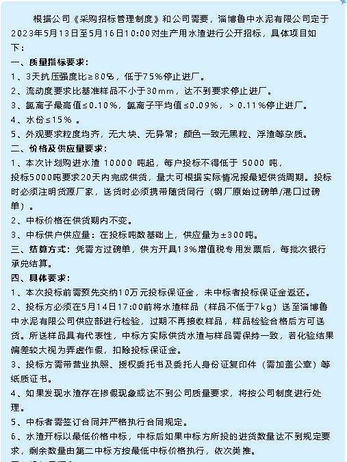 【招標(biāo)公告】魯中水泥