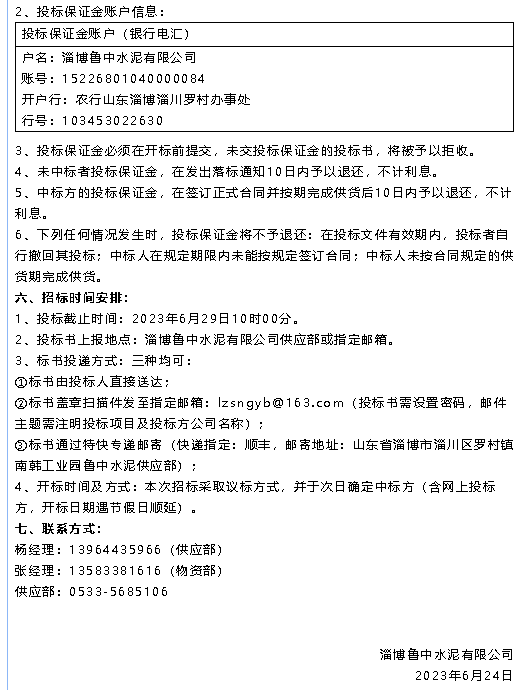 【招標公告】魯中水泥