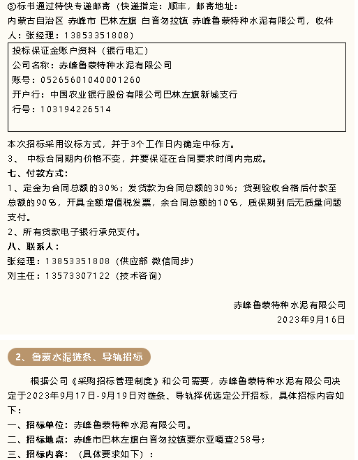 【招標(biāo)公告】魯蒙水泥