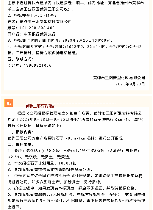 【招標(biāo)公告】黃驊三陽礦粉運(yùn)輸、熟料運(yùn)輸、石子招標(biāo)
