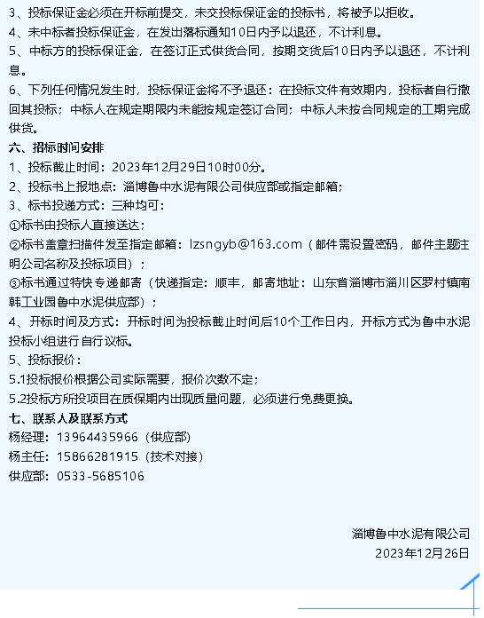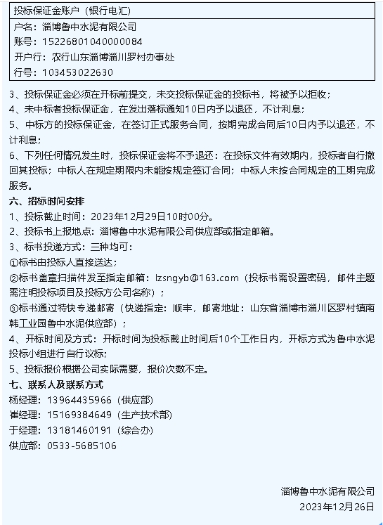 【招標(biāo)公告】魯中水泥2024年消防設(shè)施維護(hù)保養(yǎng)項目、澆注料招標(biāo)
