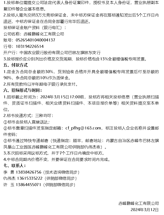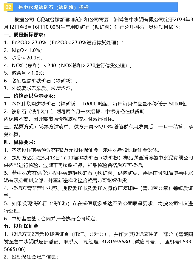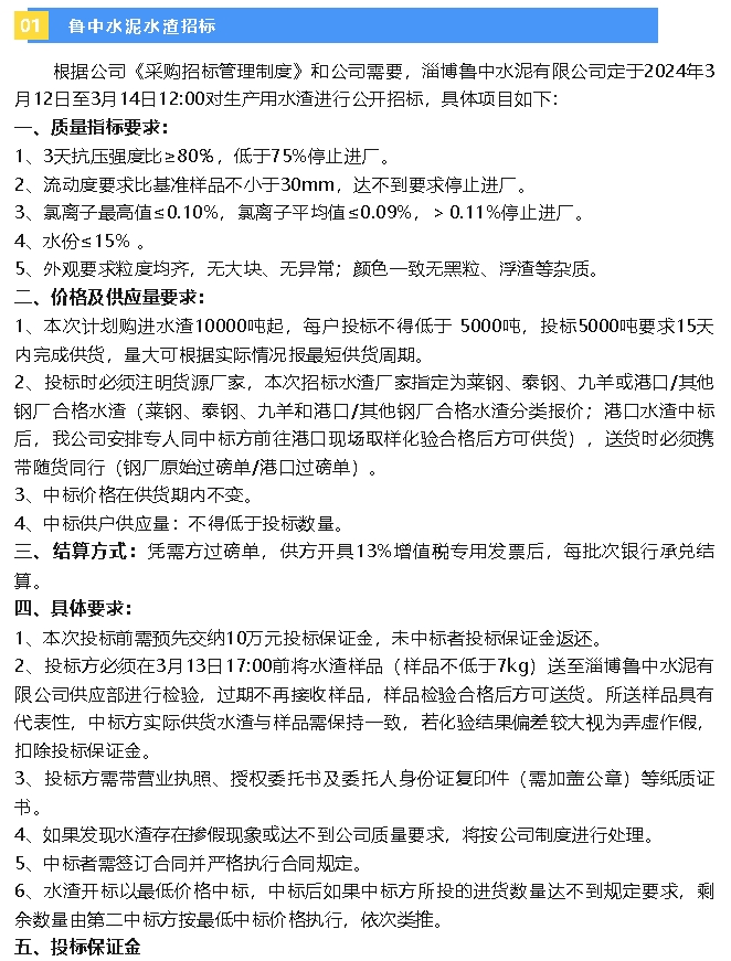 【招標(biāo)公告】魯中水泥水渣、鐵礦石(鐵礦粉) 鵬峰化工導(dǎo)氣管技改項(xiàng)目招標(biāo)