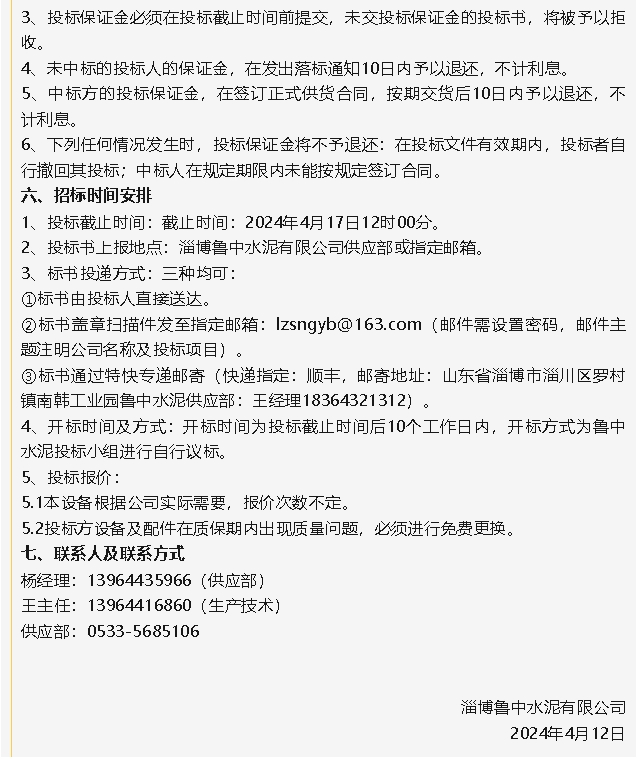 【招標(biāo)公告】魯中水泥