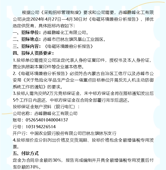 【招標(biāo)公告】鵬峰化工