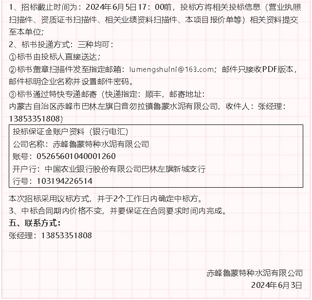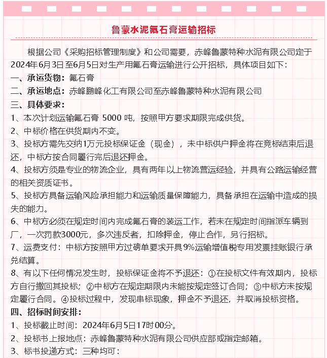 【招標公告】魯中水泥煙煤,魯蒙水泥氟石膏運輸、氨水招標