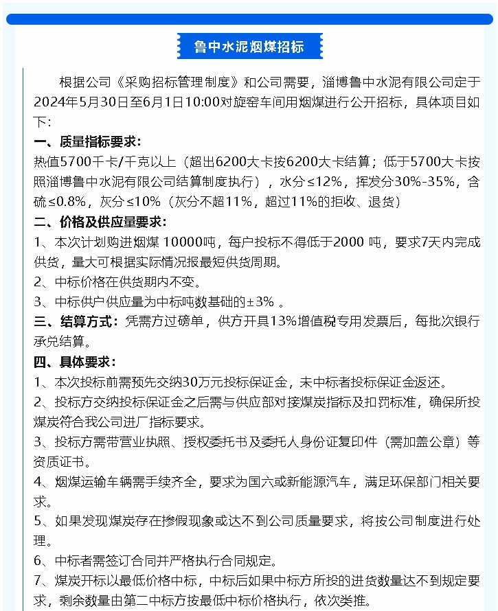 【招標公告】魯中水泥煙煤,螢澤礦業(yè)襯板、篩板招標