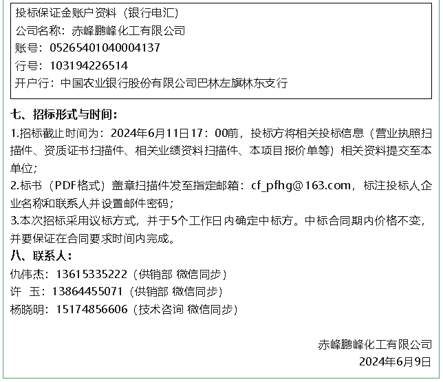 【招標公告】鵬峰化工