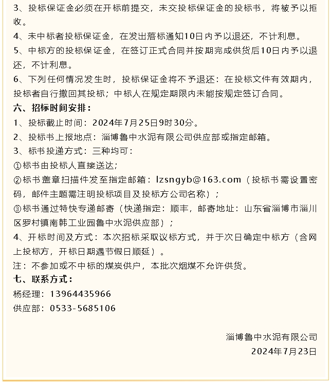 【招標(biāo)公告】魯中水泥
