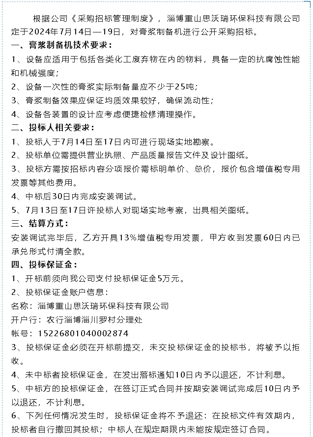 【招標(biāo)公告】重山思沃瑞