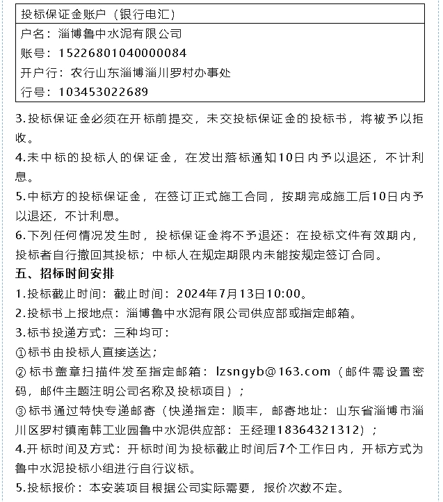 【招標(biāo)公告】魯中水泥