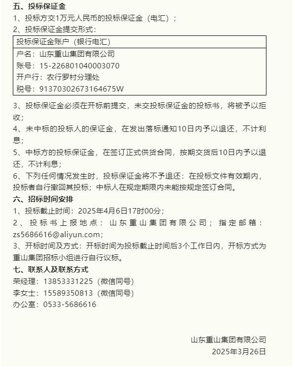 【招標公告】重山集團、鵬峰化工、魯中水泥