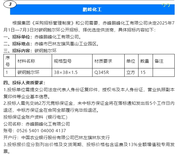 【招標(biāo)公告】魯蒙水泥、鵬峰化工