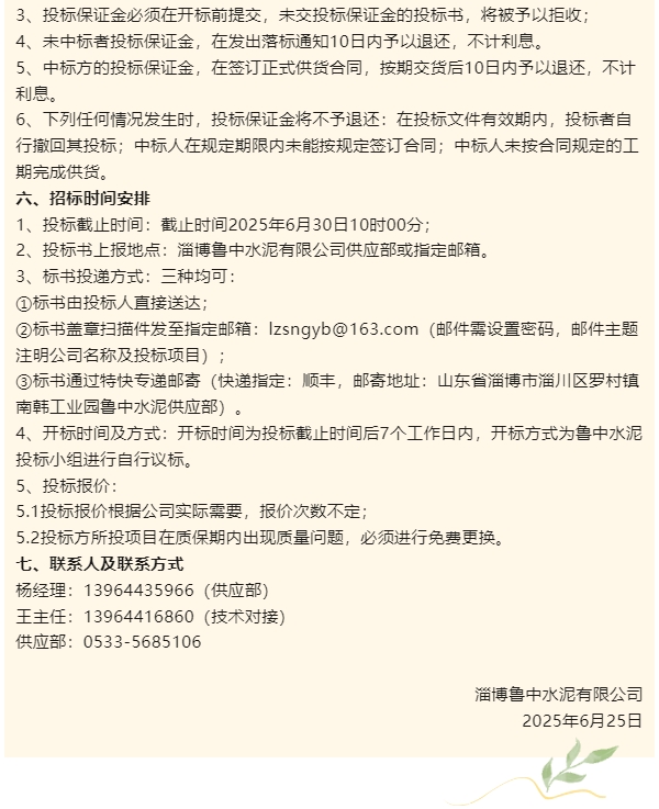 【招標公告】魯中水泥