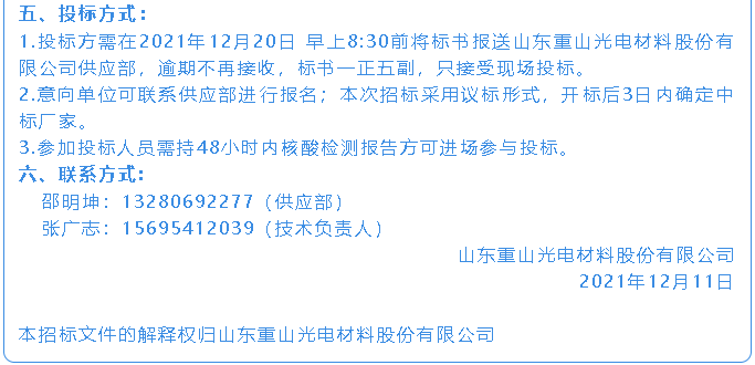 【招標(biāo)公告】重山光電