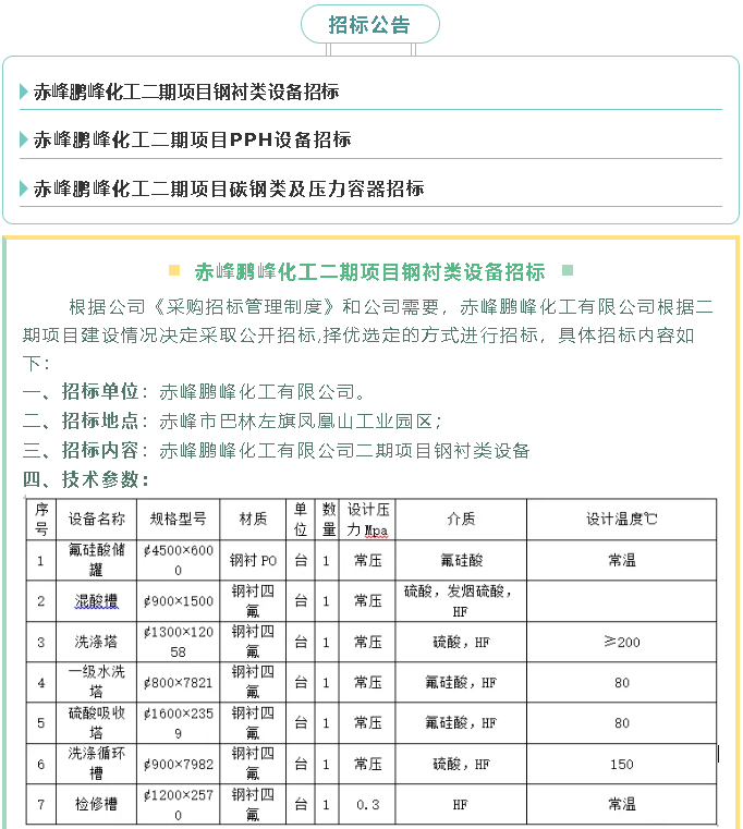 【招標公告】鵬峰化工
