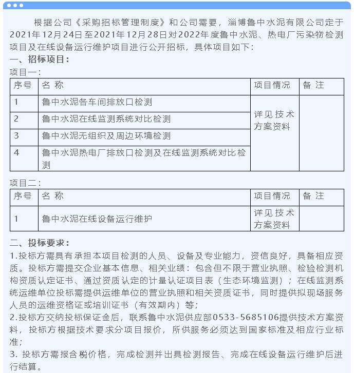 【招標(biāo)公告】魯中水泥