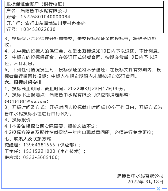 【招標(biāo)公告】魯中水泥