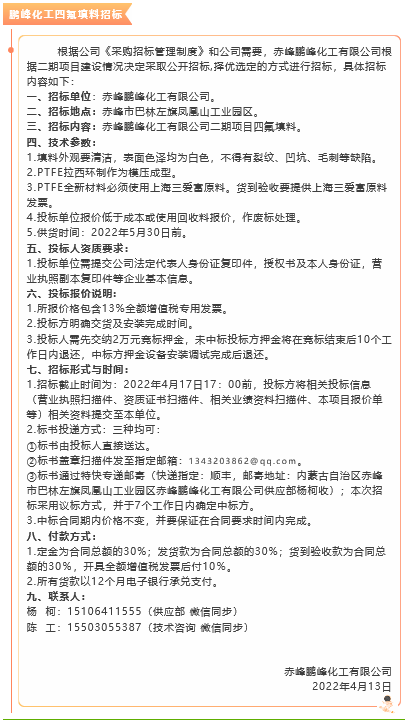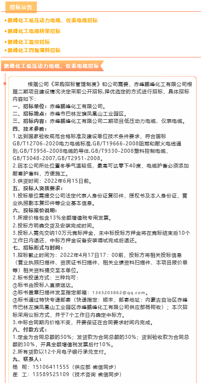 【招標(biāo)公告】鵬峰化工