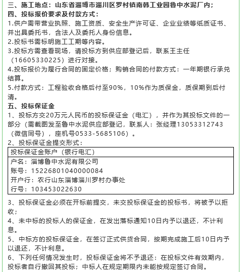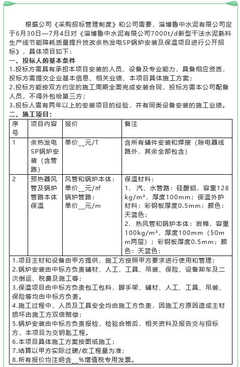 【招標(biāo)公告】魯中水泥