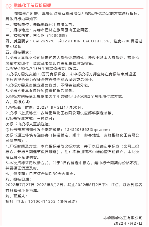 【招標(biāo)公告】魯蒙水泥、鵬峰化工