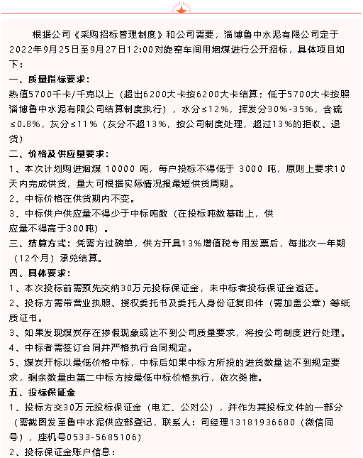【招標(biāo)公告】魯中水泥