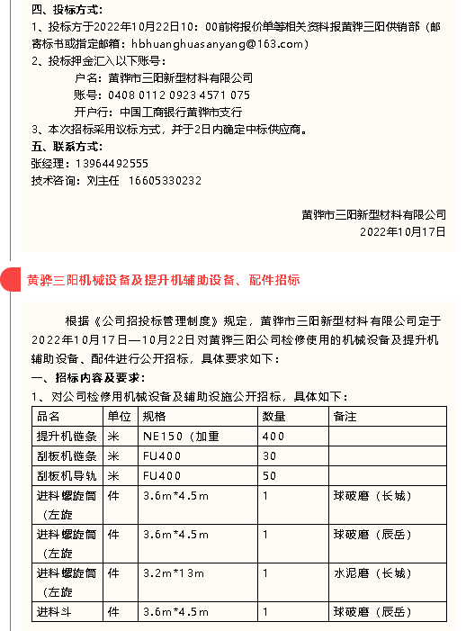 【招標(biāo)公告】黃驊三陽(yáng)、魯中水泥