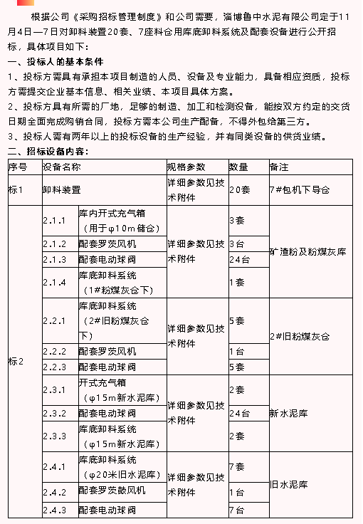 【招標(biāo)公告】魯中水泥