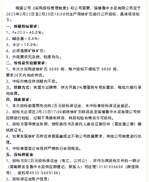 【招標公告】魯中水泥
